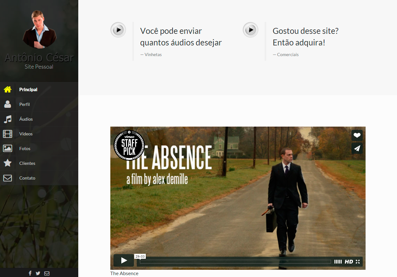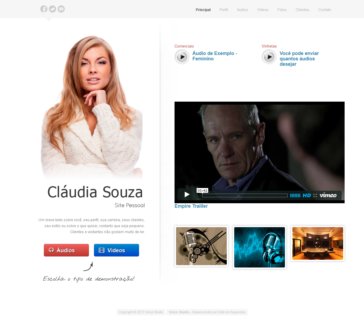 Este site para locutores foi desenvolvido pensando tanto nos locutores publicitários quanto nos radialistas, que precisam divulgar demonstrativos de voz em áudios e/ou vídeos.